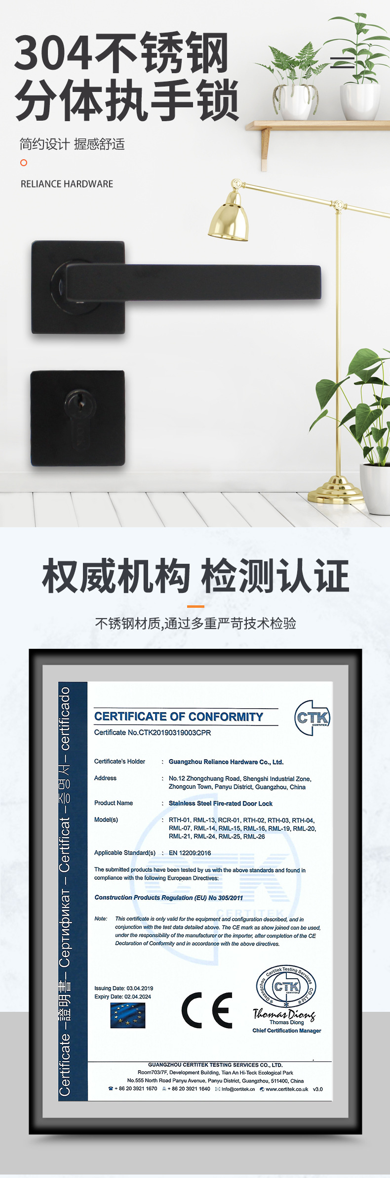 RST-17 歐標(biāo)不銹鋼304方形把手房門鎖